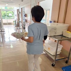 環境整備食後のテーブルの片づけやベッドサイドの清掃など環境整備を行います。